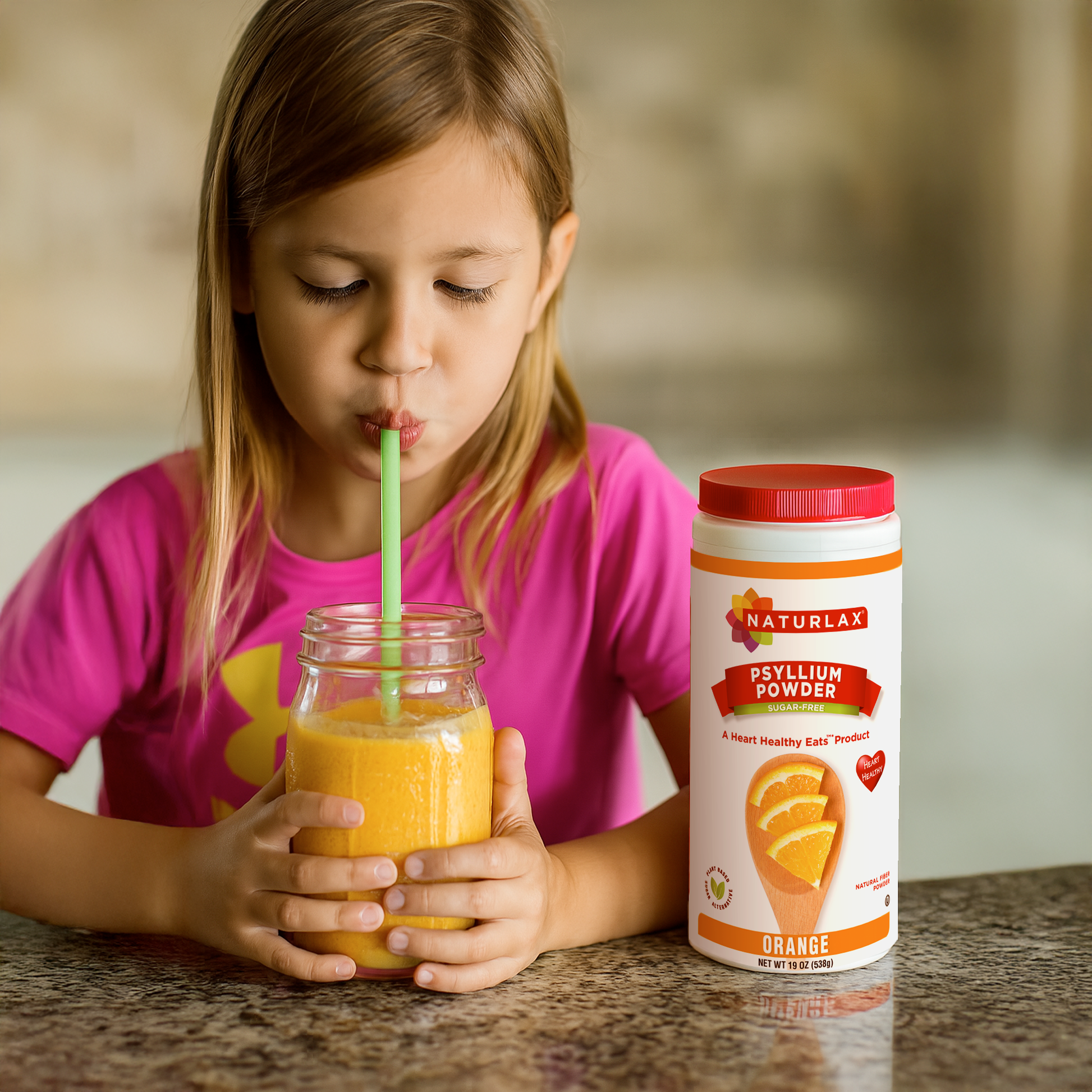 Orange Flavored Psyllium Husk Fiber Powder with Organic Sugar Cane